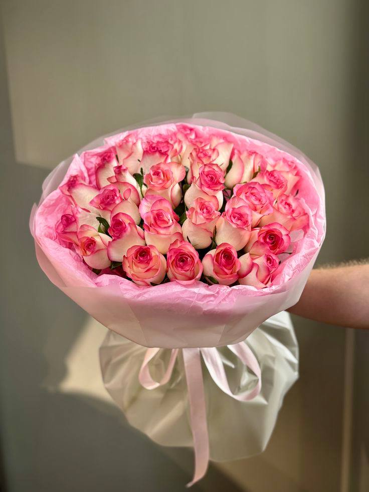 Двадцать девять роз с плотными бутонами насыщенного розового оттенка собраны в классический букет. Джумилия раскрывается постепенно, держит форму долго и радует глубиной цвета. Универсальное решение для выражения чувств без лишних слов.
