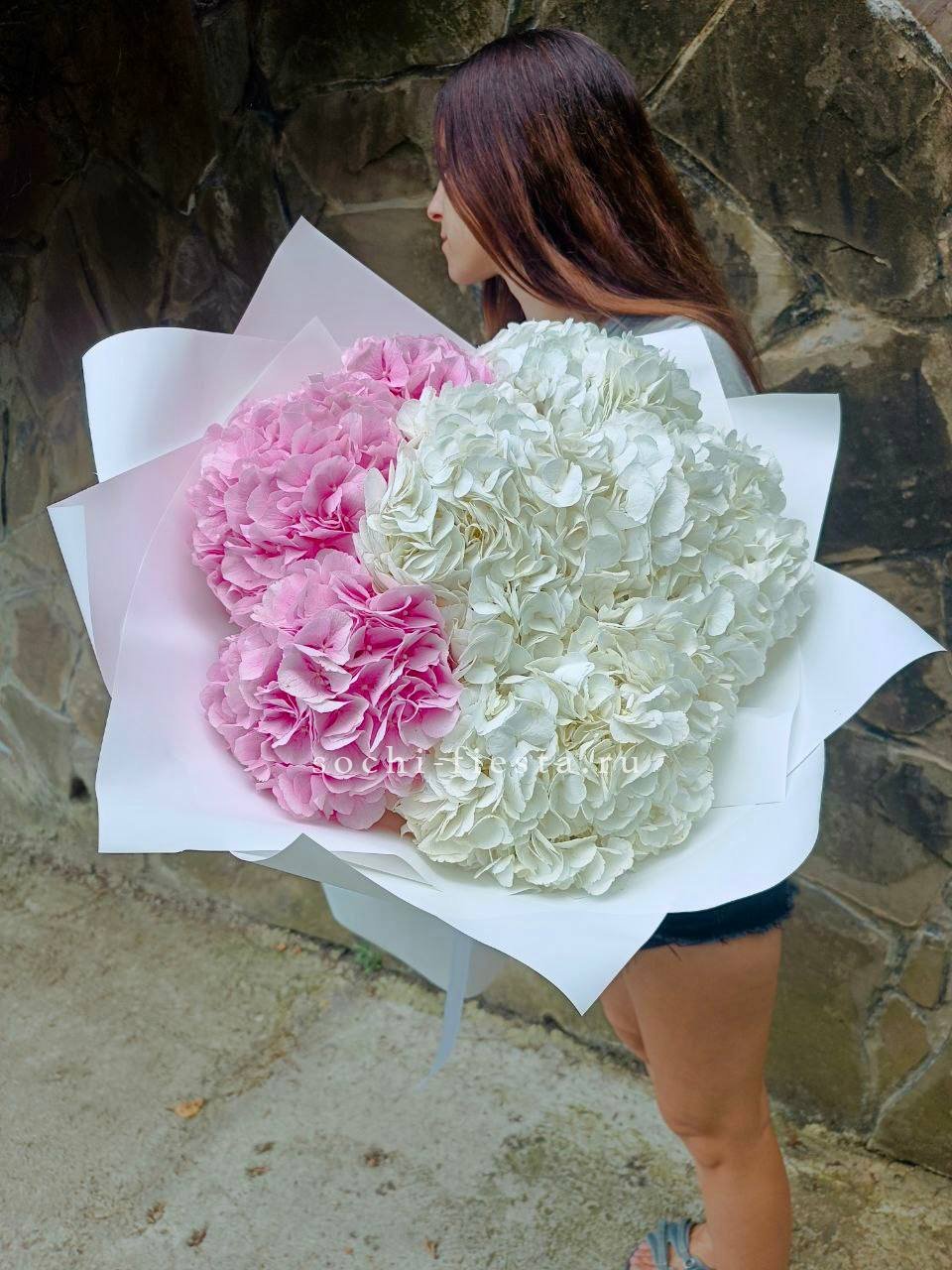 Букет выглядит объемно и держит форму благодаря плотной сборке.