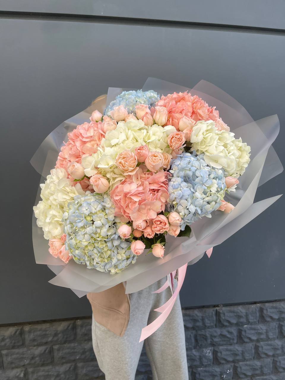 Сочетание воздушной гортензии и классических гербер в одном букете. Этот микс — идеальный баланс между нежностью и стилем. Тот самый подарок, который мгновенно преображает пространство и дарит ощущение праздника. Идеальный выбор для тех, кто вдохновляет на самое лучшее.