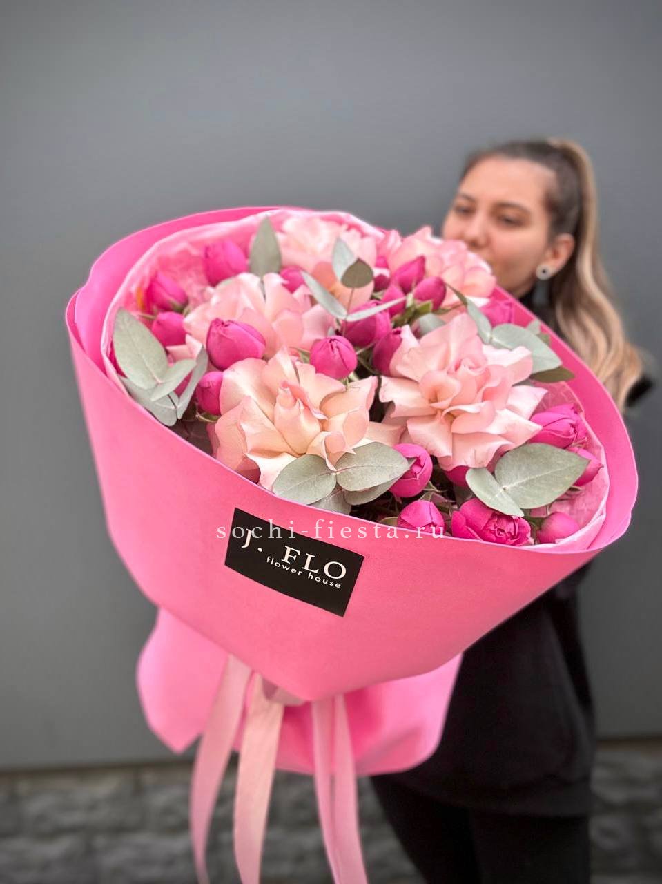 французские розы, пионовидные розы мисти бабблс, эвкалипт, оформление.