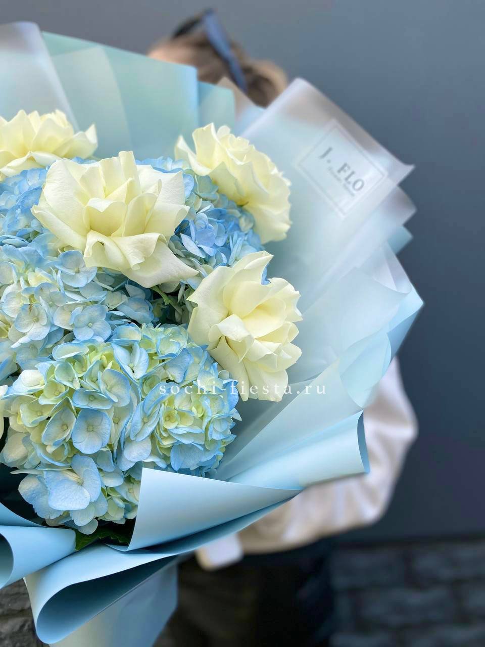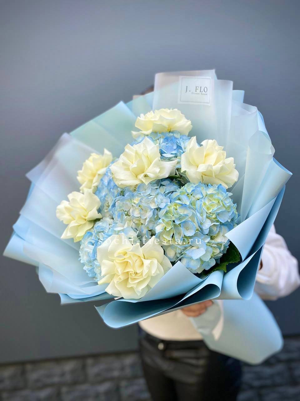 Букет из гортензий и розовых роз
