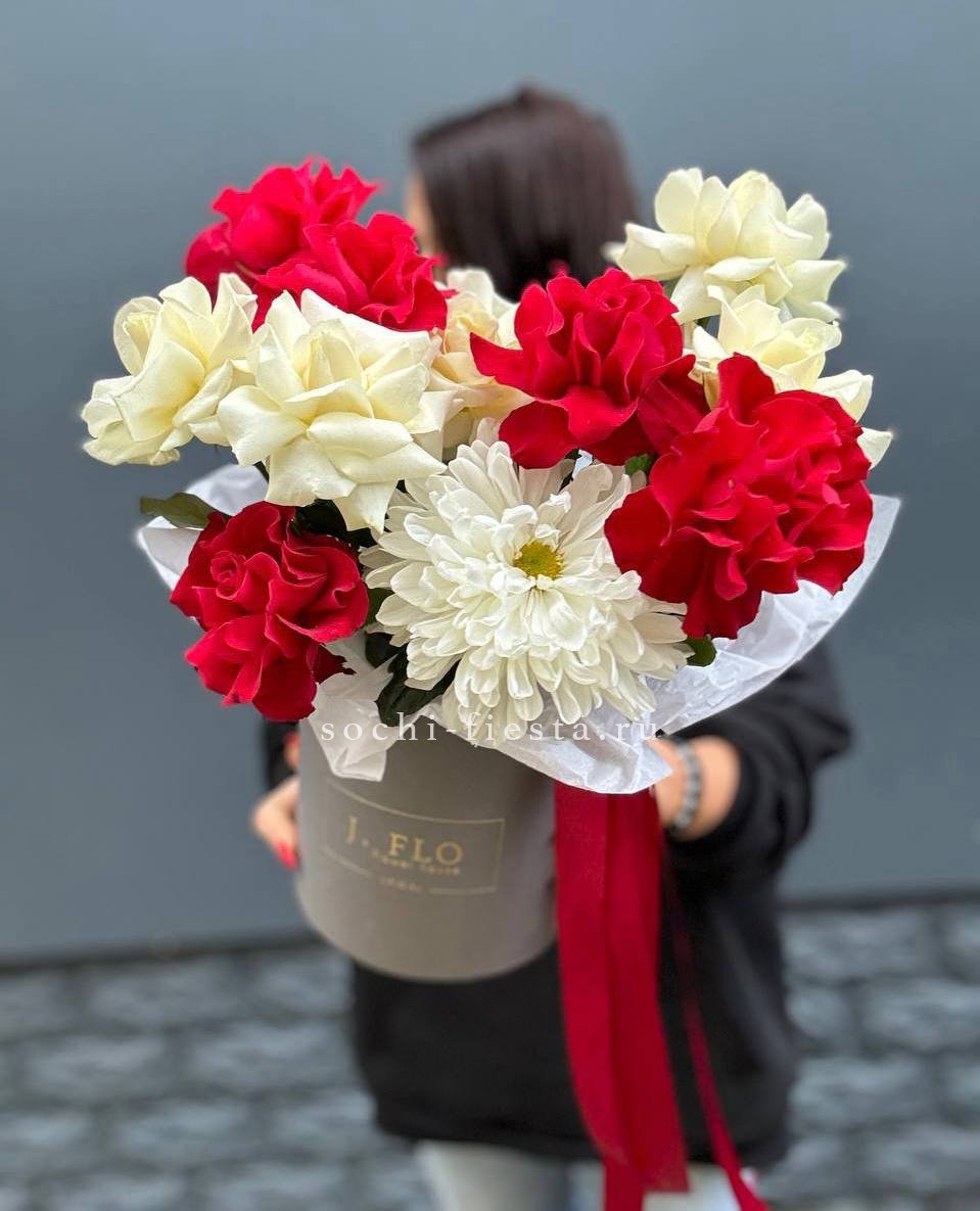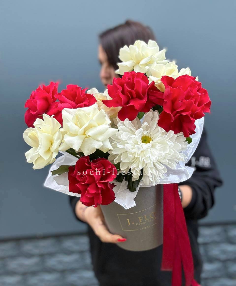 Масштабная композиция объединяет диантусы, антиринумы и розы разных сортов в единую структуру. Крупный бокс позволяет раскрыть каждый цветок в полную силу. Присутствие такой работы ощущается сразу.