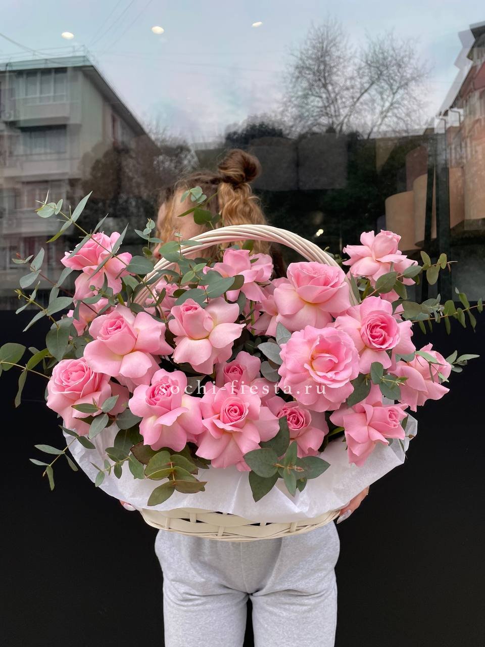 Цветочная корзина из пионов и пионовидных роз "Перфекте"