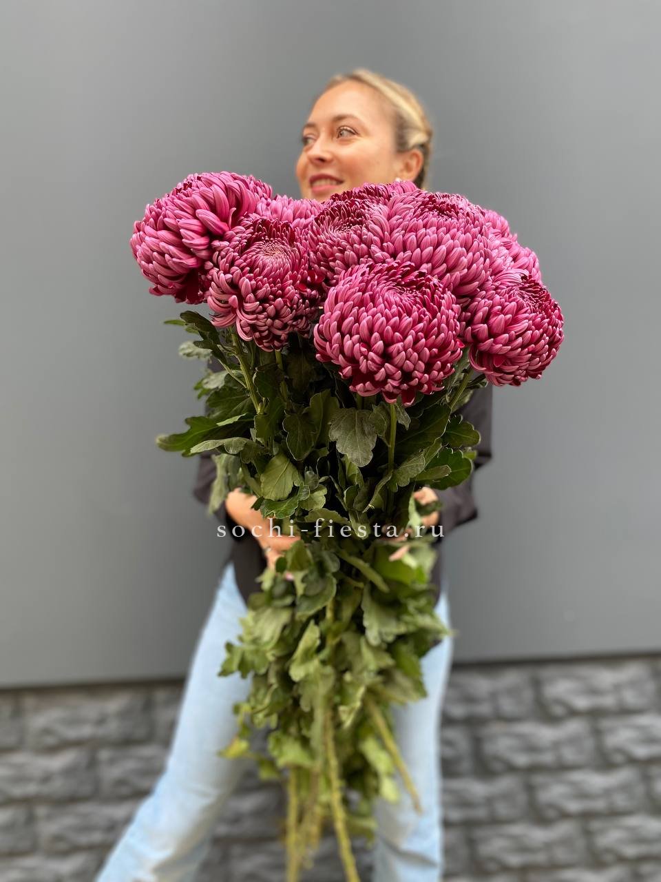 одноголовые хризантемы Бигуди, лента Количество на фото 15 шт.