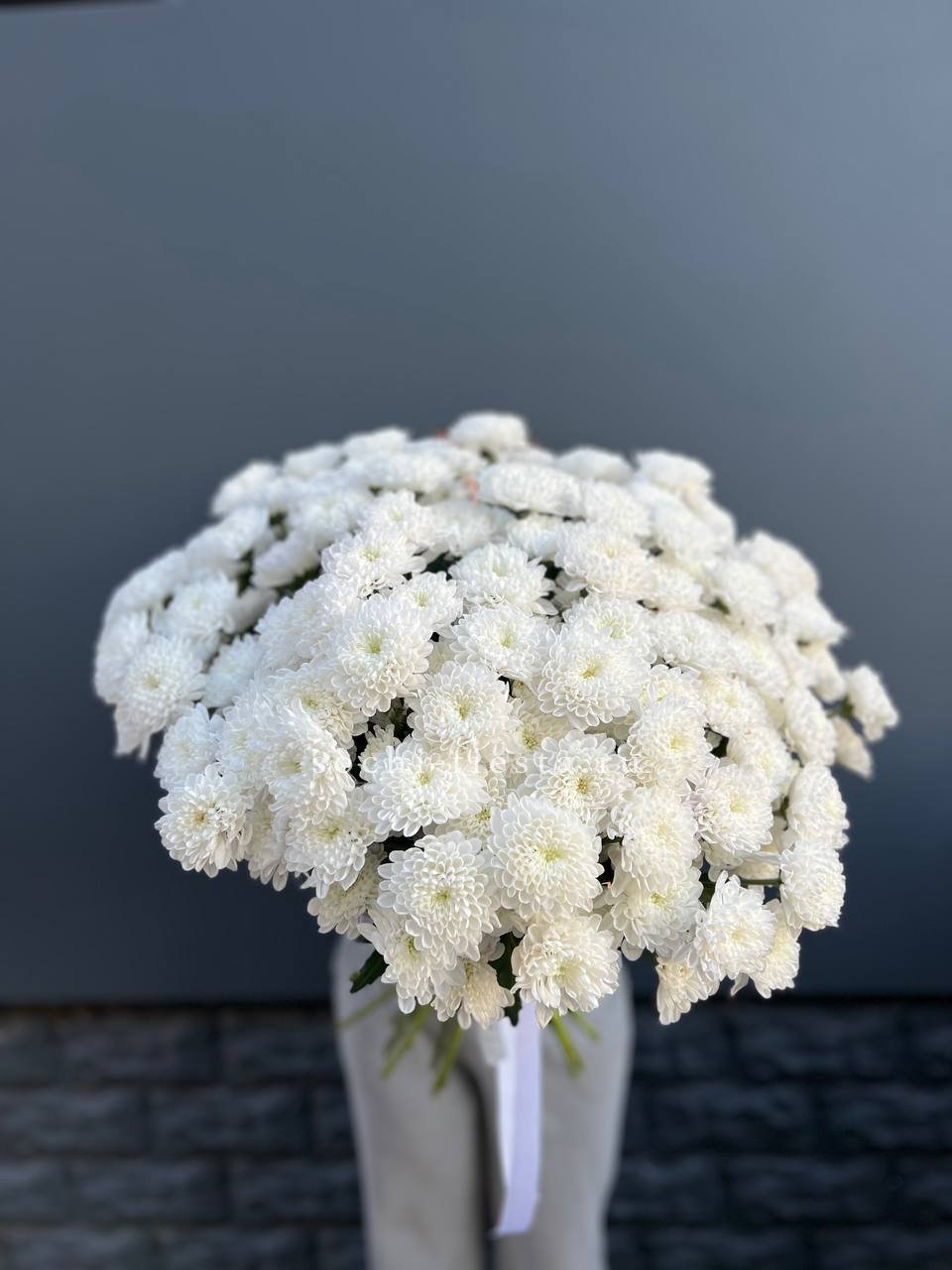 хризантема кустовая - 17 веток, тишью, дизайнерская упаковка, лента.