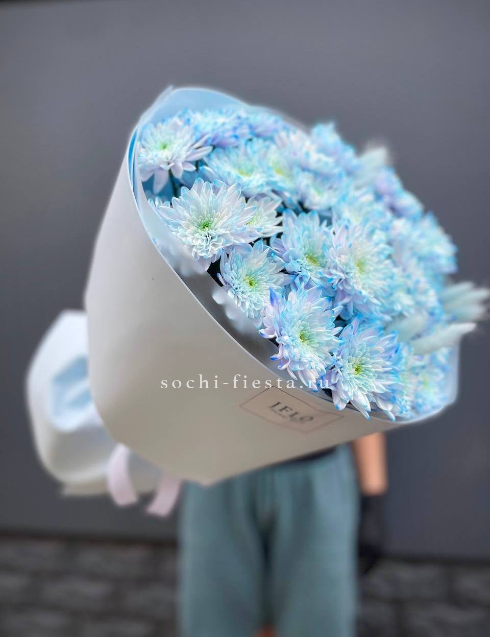 Букет нежно-голубых хризантем