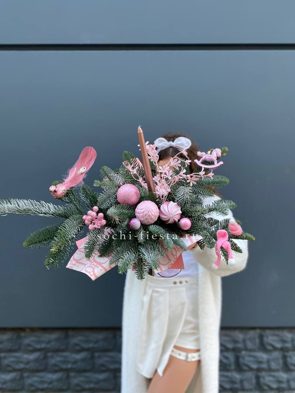 нобилис, бокал, оазис, свечи, новогодние игрушки, декор ВНИМАНИЕ! Готовая композиция (декор) может иметь незначительные внешние отличия от примера на фотографии.