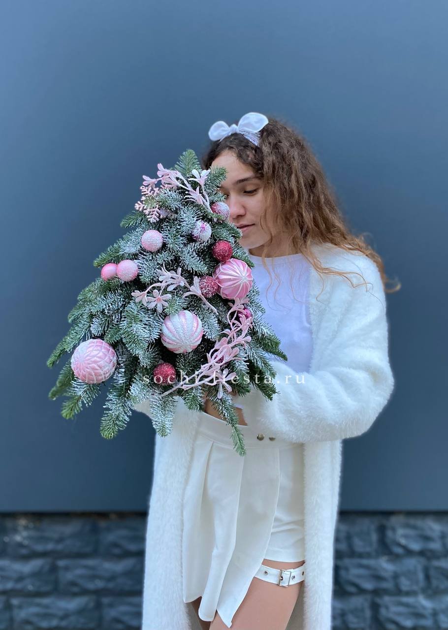 Пушистая ёлочка из датского нобилиса с яркими игрушками на ветках. Форма повторяет силуэт настоящего дерева и занимает совсем немного места. Готова к размещению сразу после распаковки.