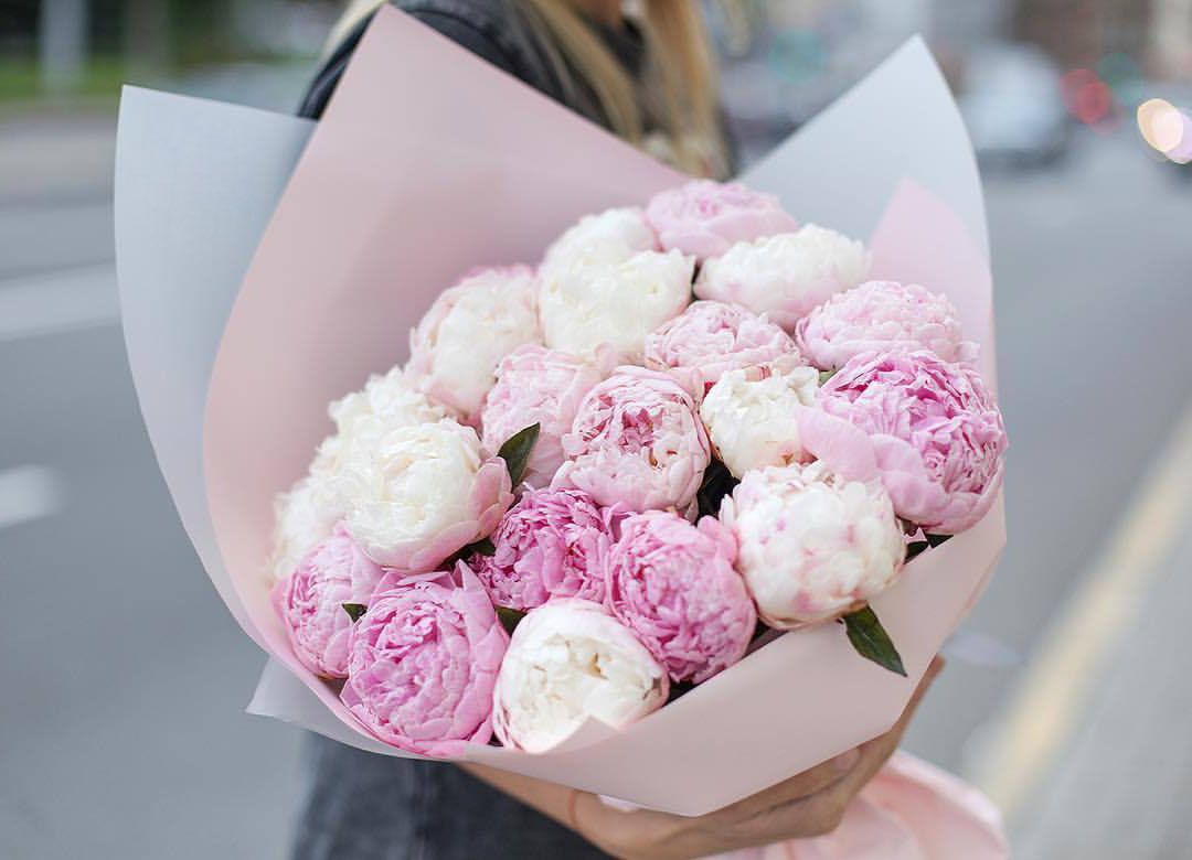 Пионы Buttons с их округлыми махровыми головками собраны в плотную композицию. Дизайнерская упаковка подчёркивает архитектуру букета, а комбинированная текстура материалов добавляет объём и завершённость.