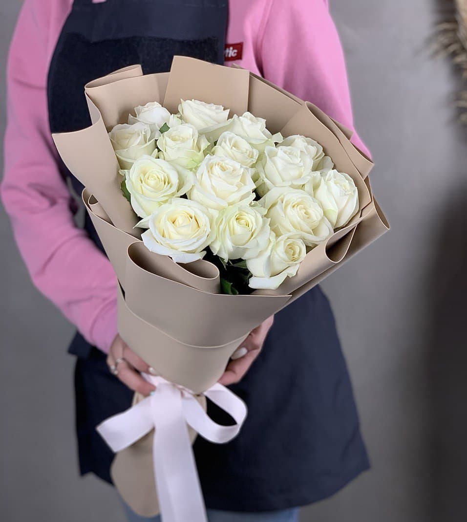 21 белая роза, лента, упаковка на выбор.