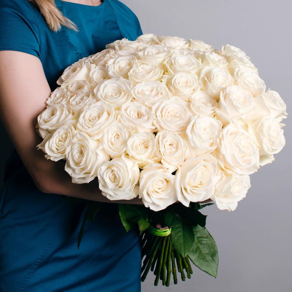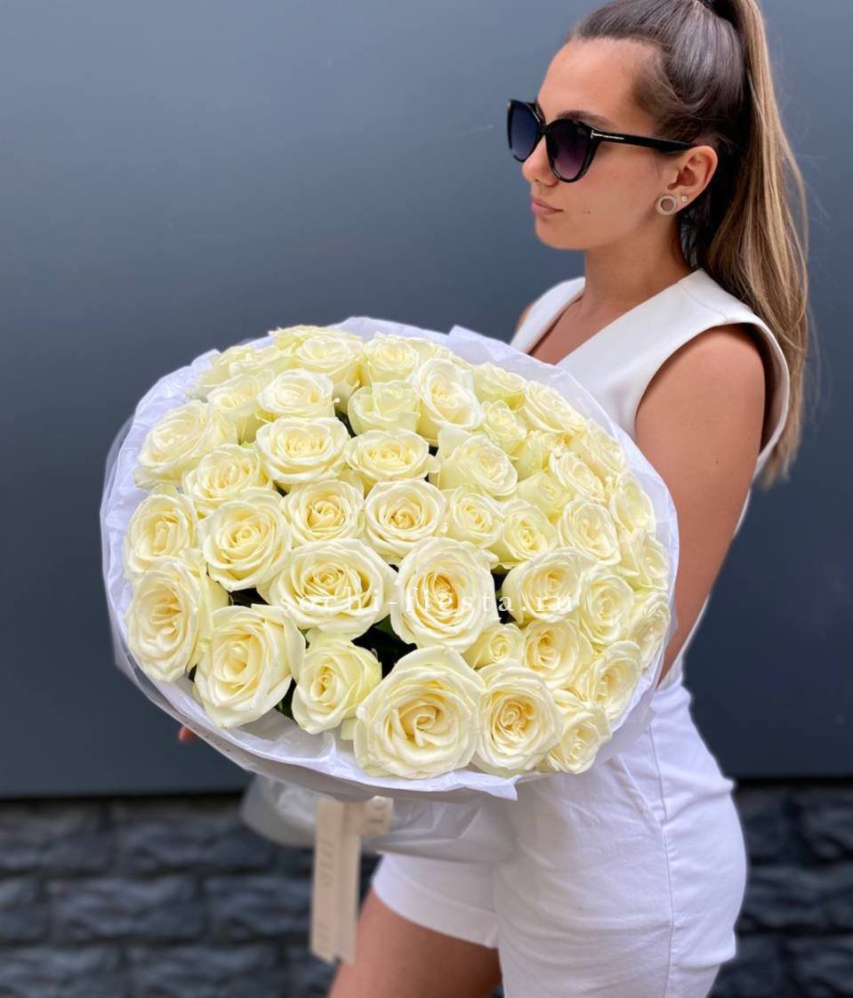 белые розы 35 шт., лента, упаковка на выборВы можете выбрать любое количество.