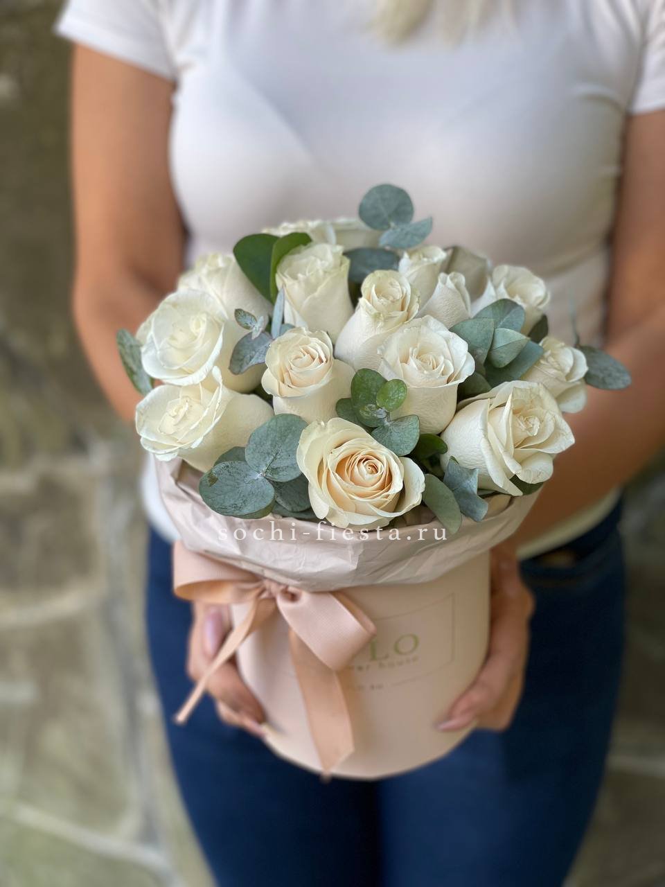 Семь роз сорта Иммерсив в лаконичной дизайнерской подаче. Чистый белый цвет и графичная форма создают спокойное, почти медитативное впечатление. Для тех, кто предпочитает точность.