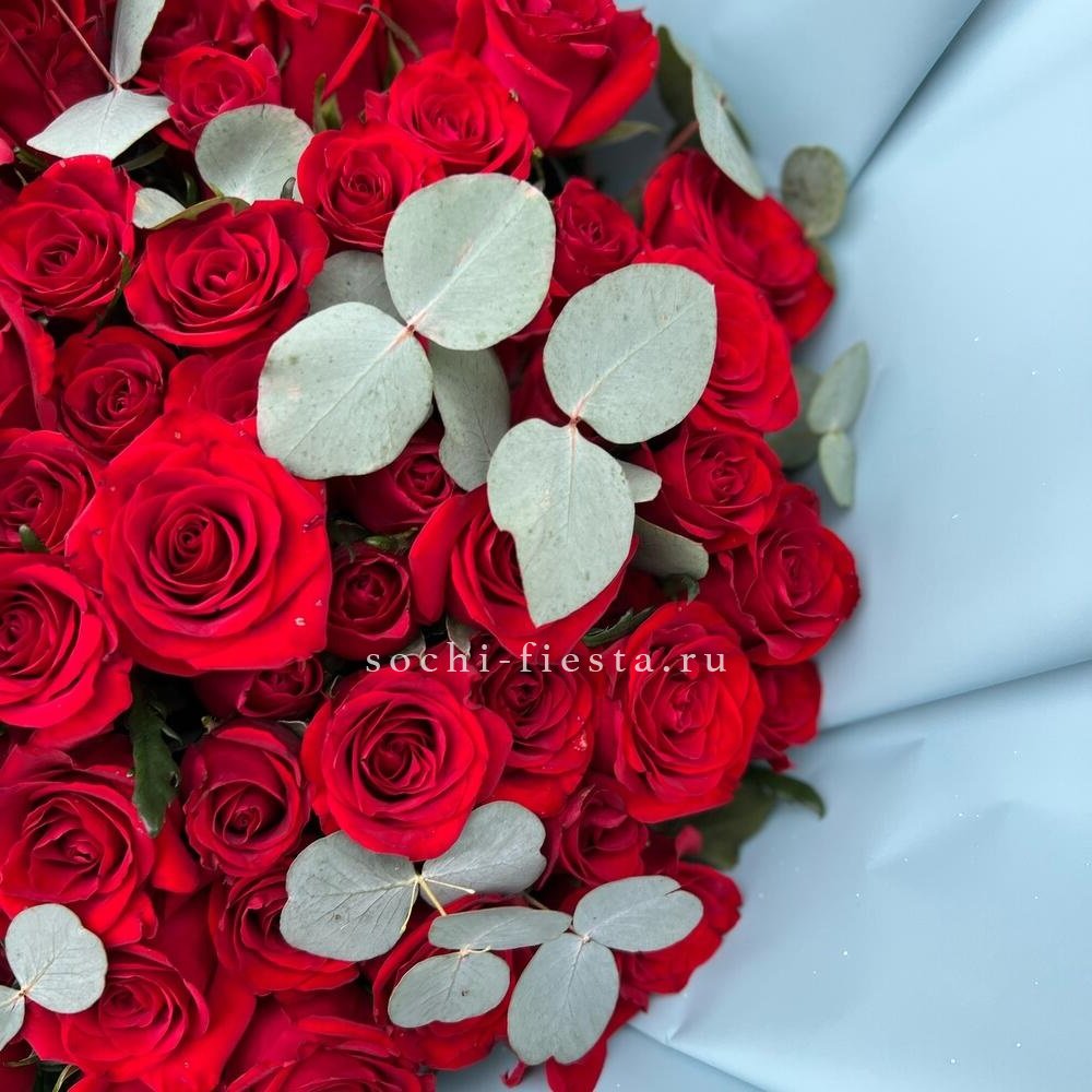 21 красная роза, лента, дизайнерская упаковка.