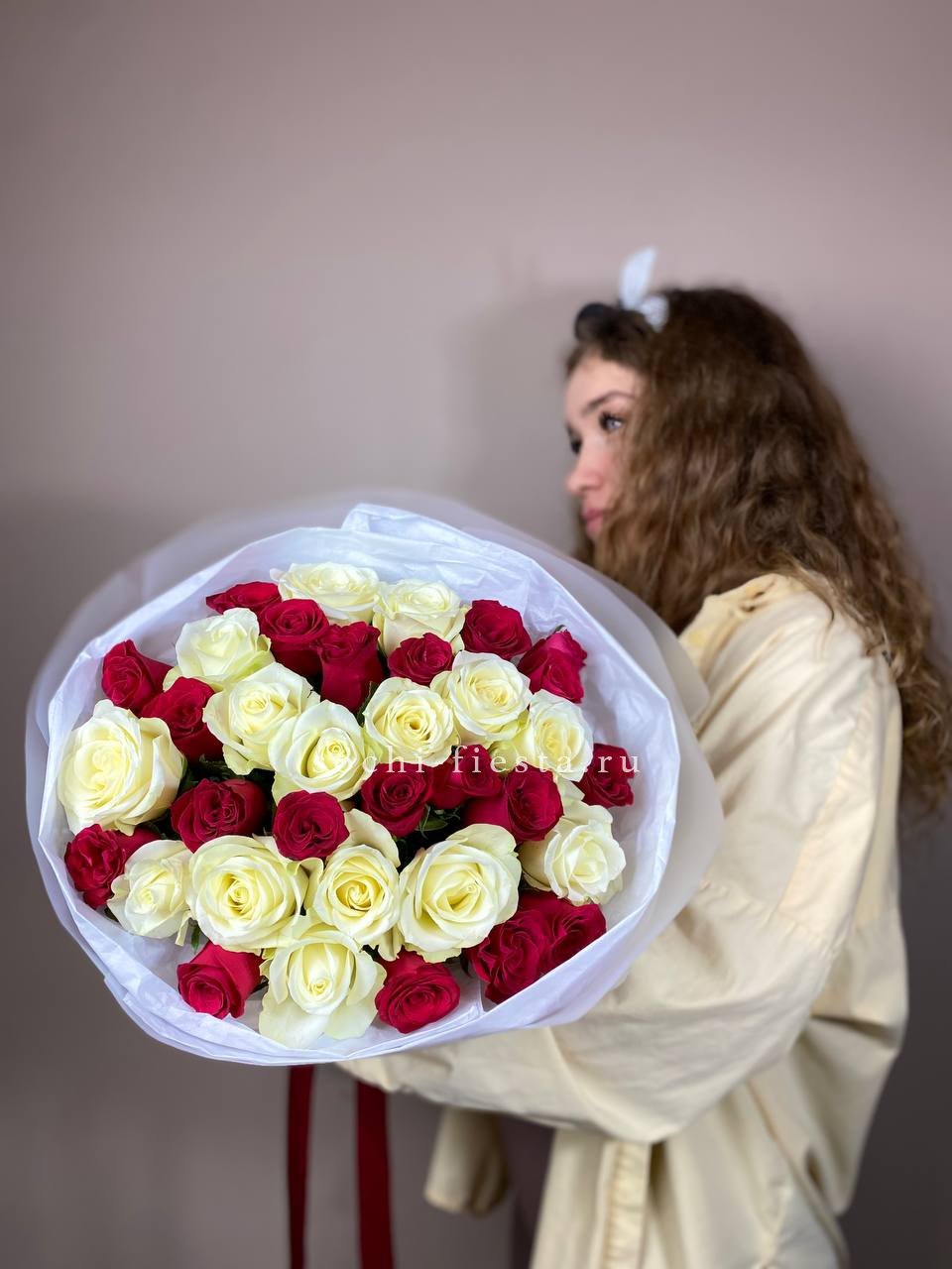 Для заказа товара "Букет из красных белых 35 роз" с доставкой в Старом Осколе нажмите в корзину