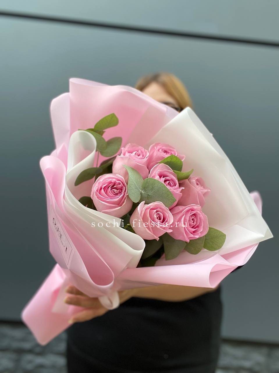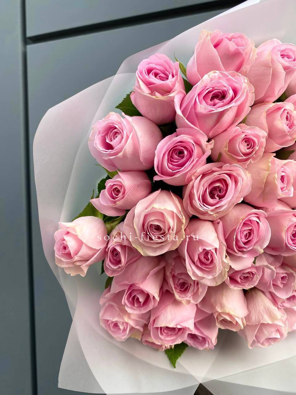 розовые розы - количество на выбор, авторская упаковка, лента.