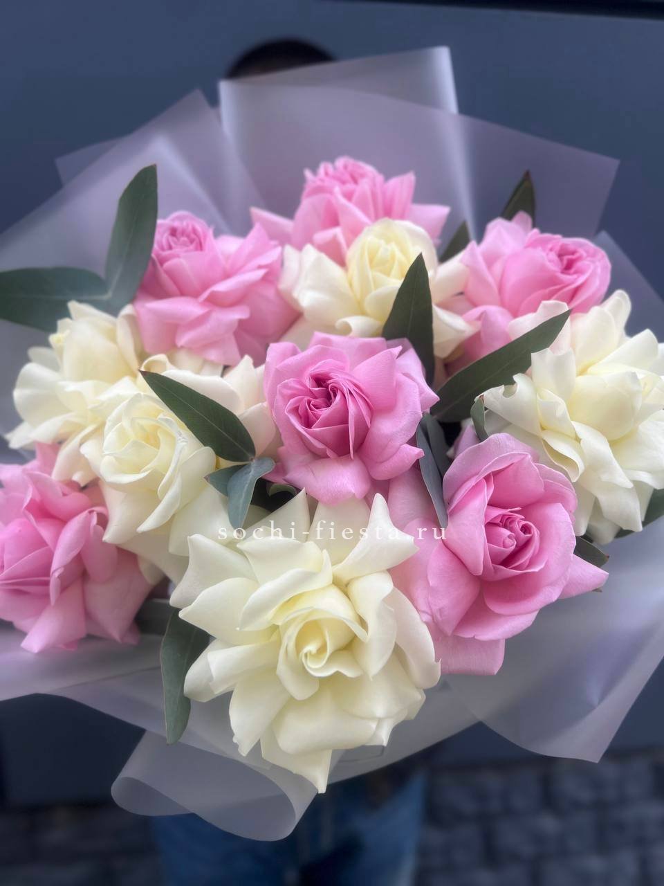 вывернутые розы, эвкалипт, лента, авторская упаковка.