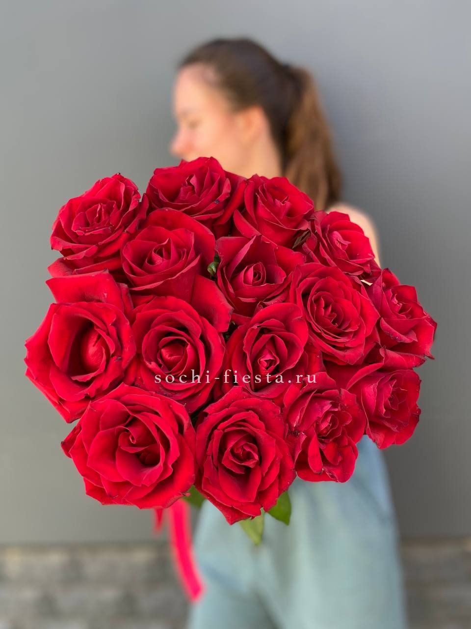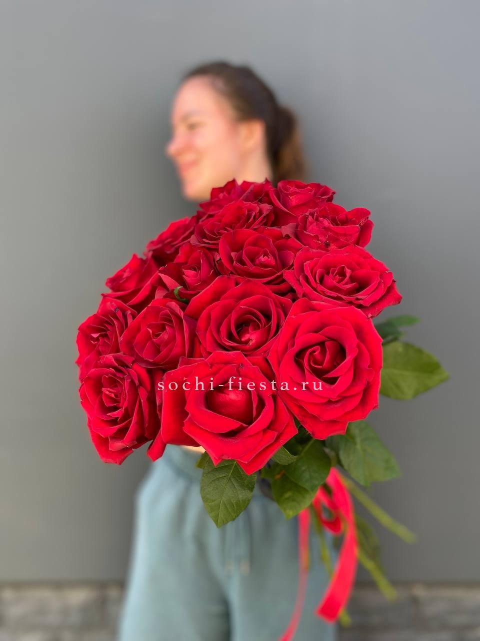 15 высоких красных роз