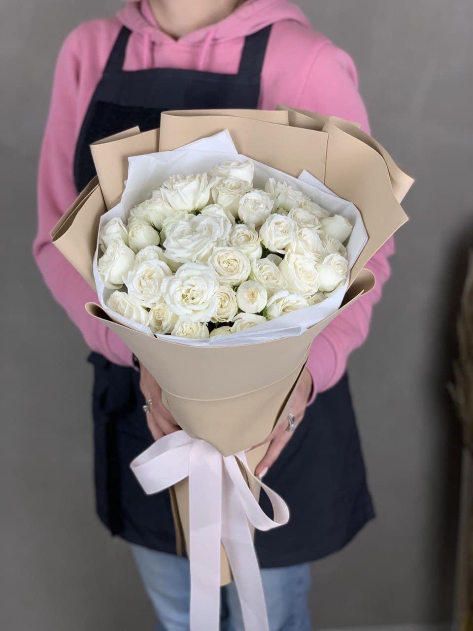 101 кустовая роза, лента, дизайнерская упаковка.