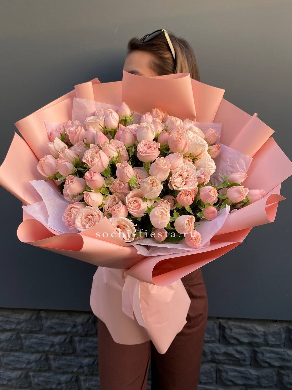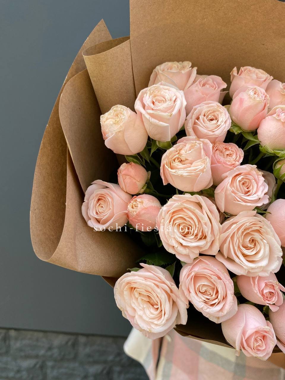 Кустовые розы Бомбастик в крафте