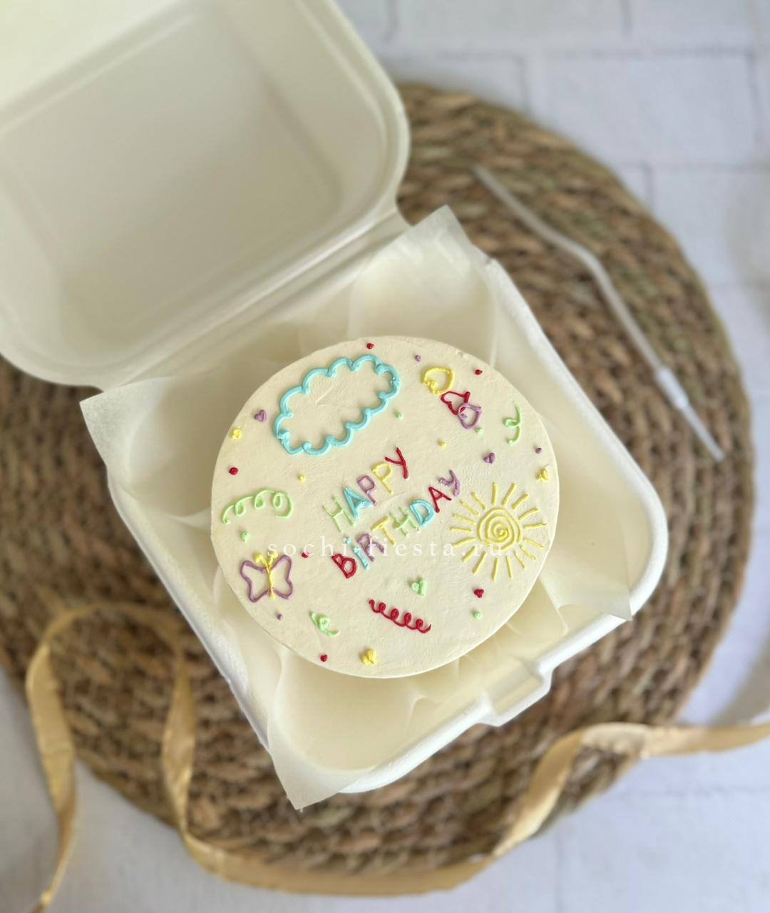 Авторский бенто-торт в формате на одного-двоих человек с яркой праздничной надписью. Клубничный пломбир или шоколадный трюфель внутри раскрывают классические сочетания вкусов.